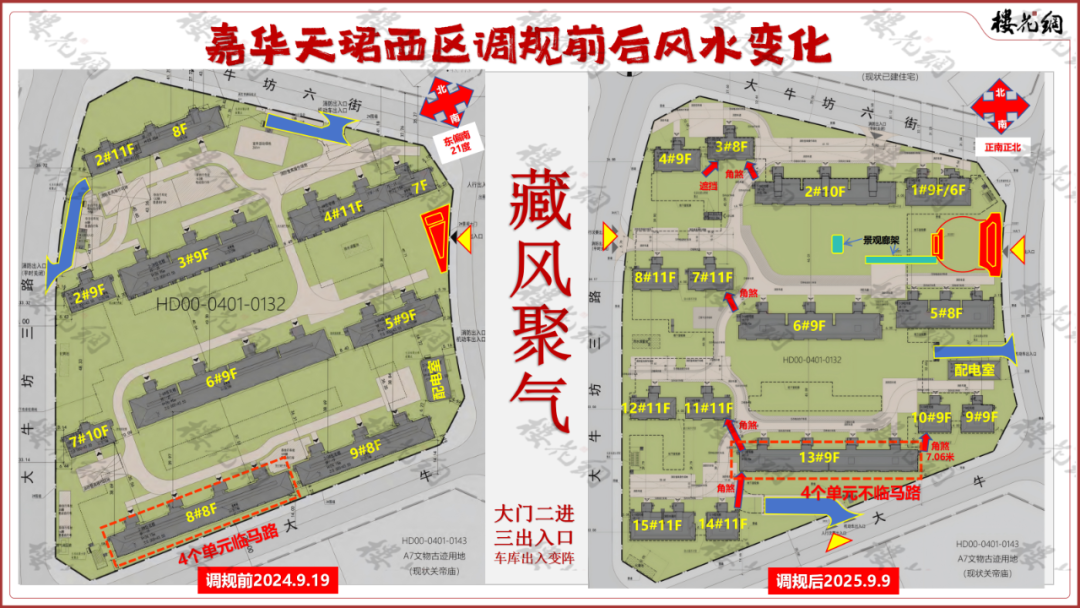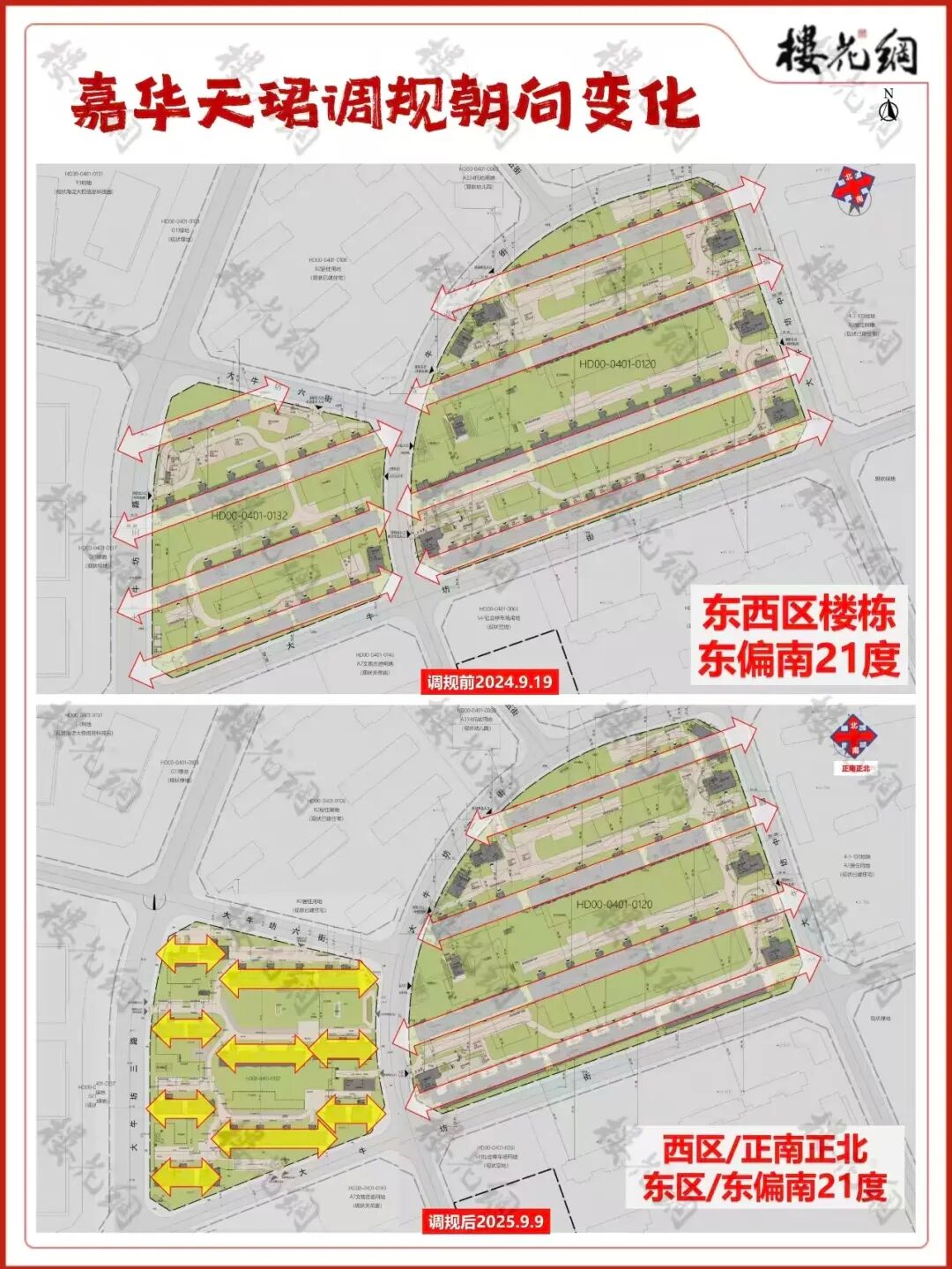 1、楼栋朝向,从原来的东偏南21度,变成正南正北朝向;
