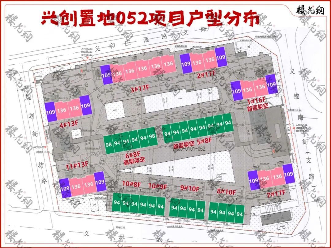 兴创置地对它们的户型配比规划,也几乎是一致的。052地块户型主要分3个段位:94平、109平三居,以及136平四居。