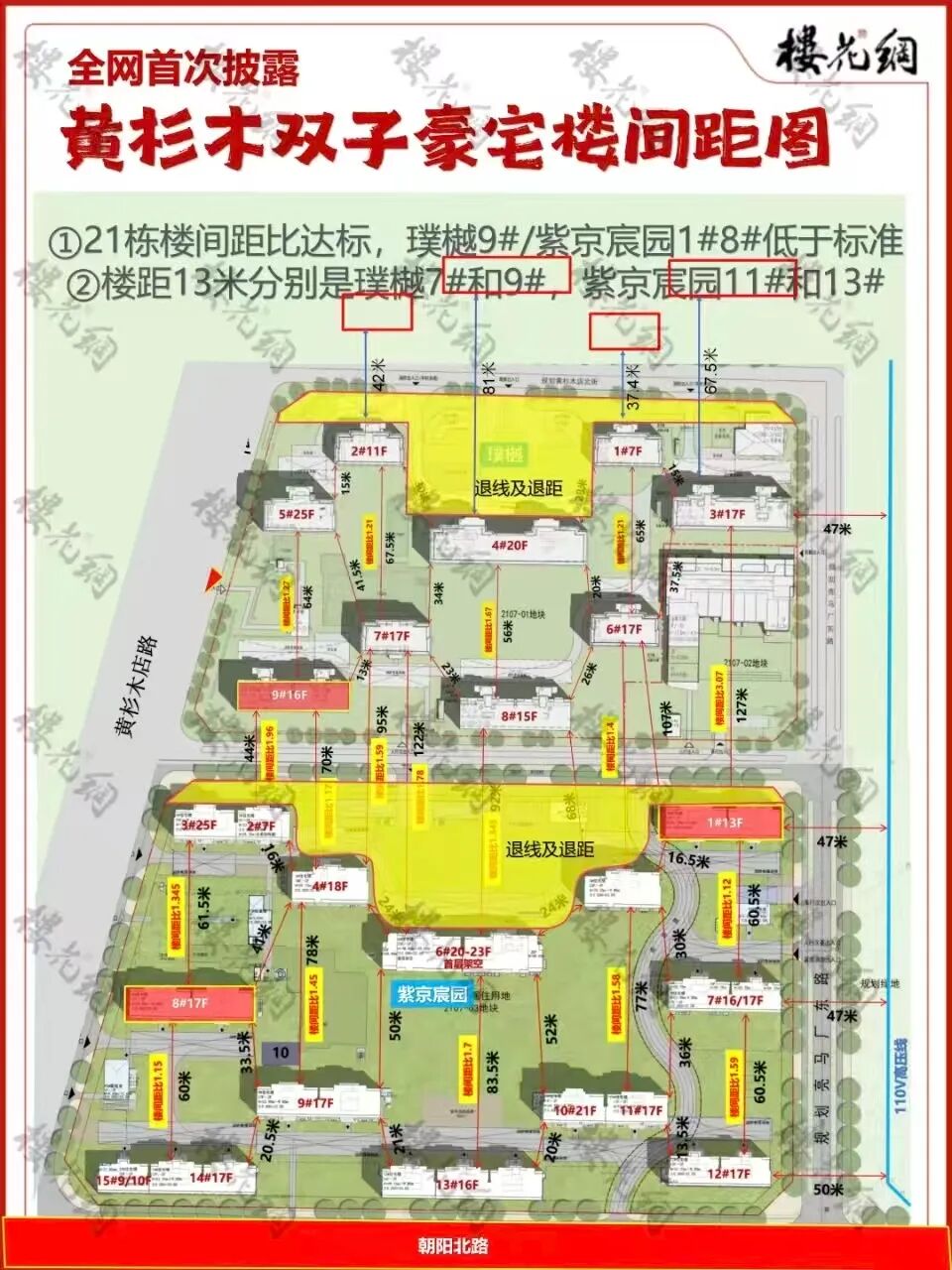 紫京宸园和璞樾的东边50米左右,都有110千伏高压线,但紫京宸园要严重些,至少临近4座高压线塔;而璞樾用幼儿园挡了高压线,只有1#在东边,挨着高压线。