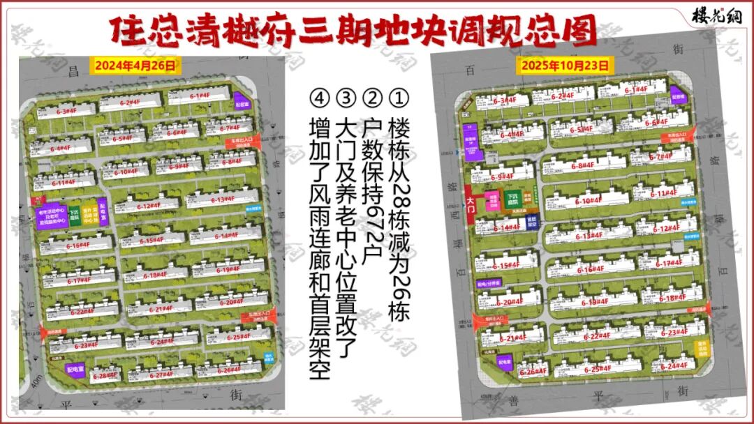 三期楼栋数,比旧版少了两栋,但它的总户数没有变化,仍为672户。