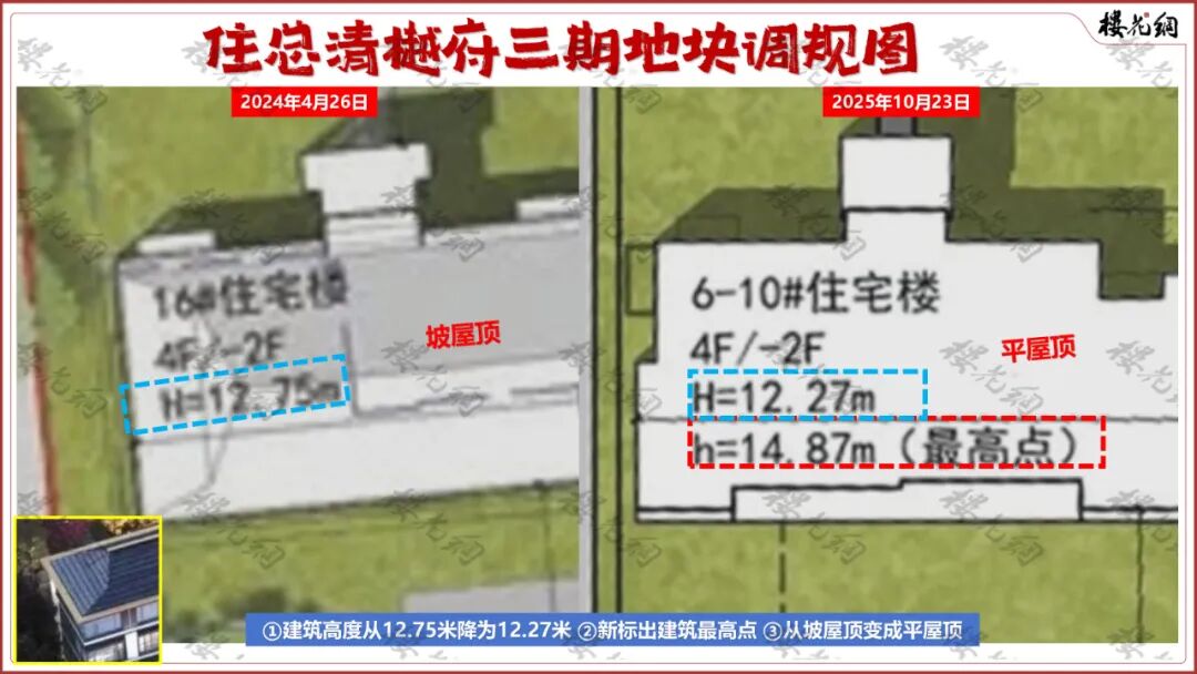 还有一个小变化是,三期住宅的整体建筑高度,略有改动。原本为12.35至12.75米的层高,变成了12.27米至12.45米。