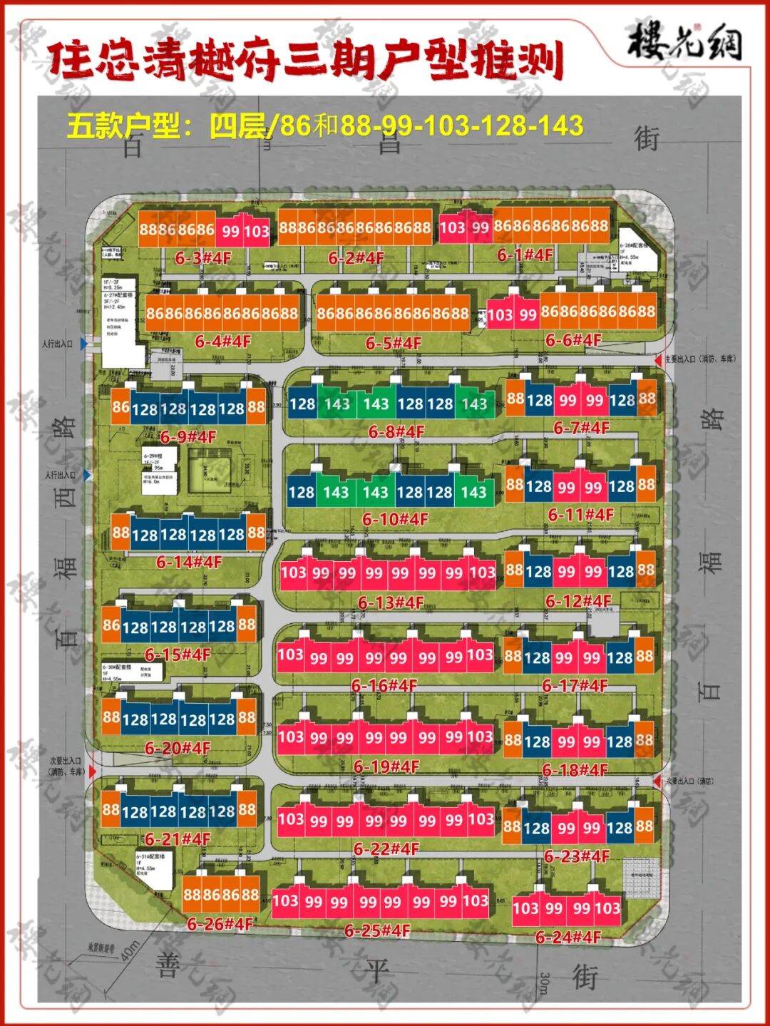 3、128平米。分布在13栋楼中,总房源约152套,占比22.62%;
