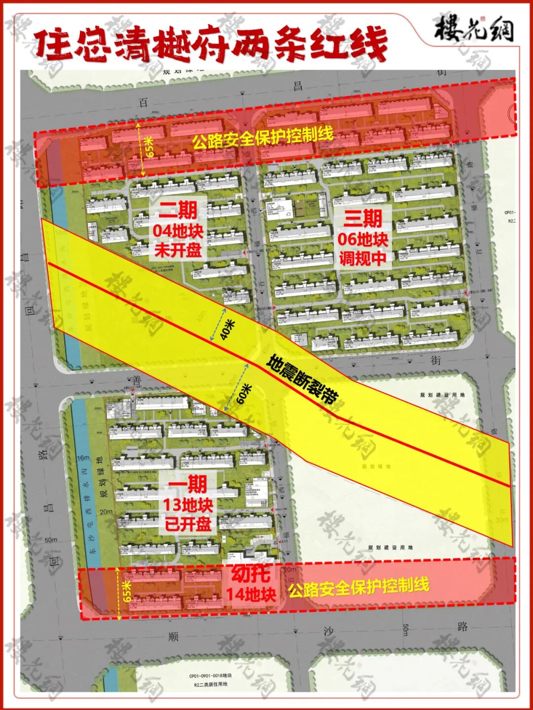 从图纸上看,住总清樾府二期和三期距离地震断裂带40米,一期距离60米。