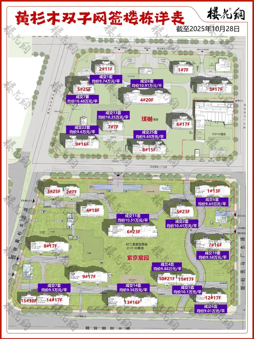 为了避免兄弟阋墙,紫京宸园和璞樾采取了差异化的推盘策略:预售楼栋区位错位。