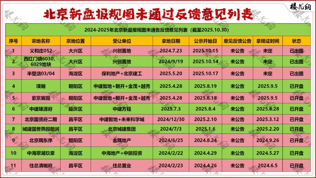 如:2025年8月25日的朝阳区北熙区三期;2025年10月17日的海淀区保利和建工半壁店双子座;2025年10月14日、10月15日大兴区兴创置地旗下,西红门6030地块和义和庄052地块。