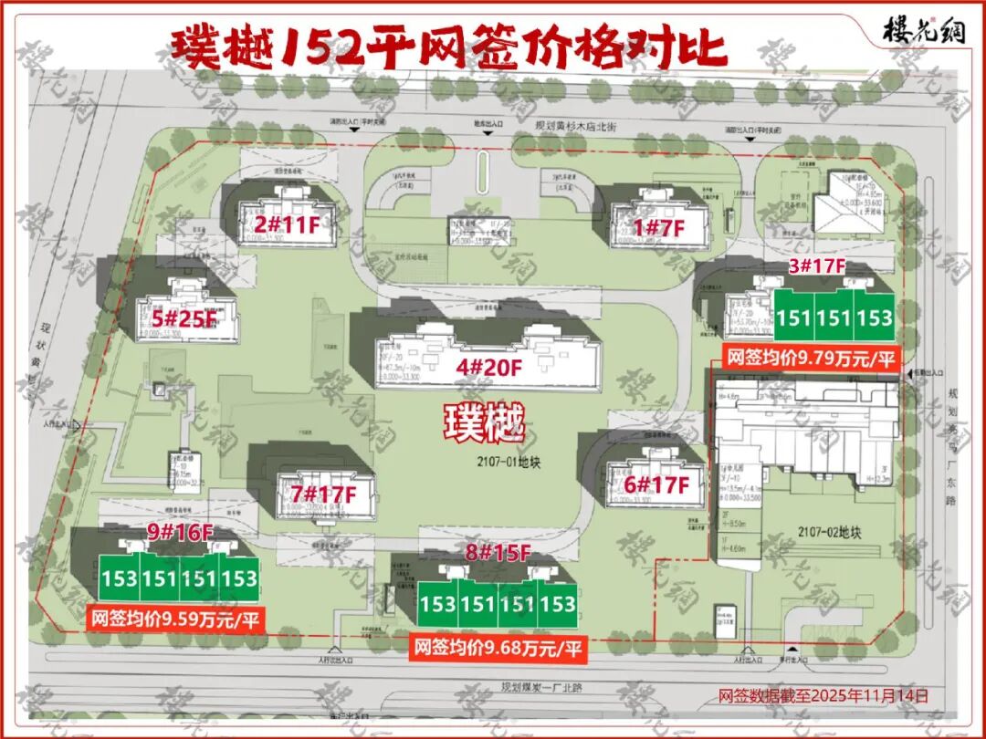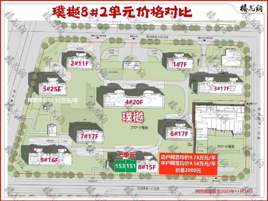 璞樾楼王是4#,网签均价12.9万元/平米;紫京宸园楼王是6#,网签均价12.65万元/平米。