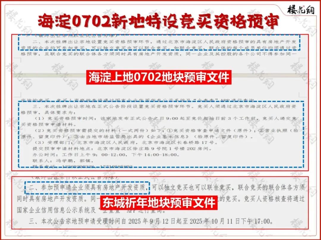 1、参拍资质较高。0702组合地块额外设置了竞买资格预审环节,需通过北京市海淀区人民政府资格预审;