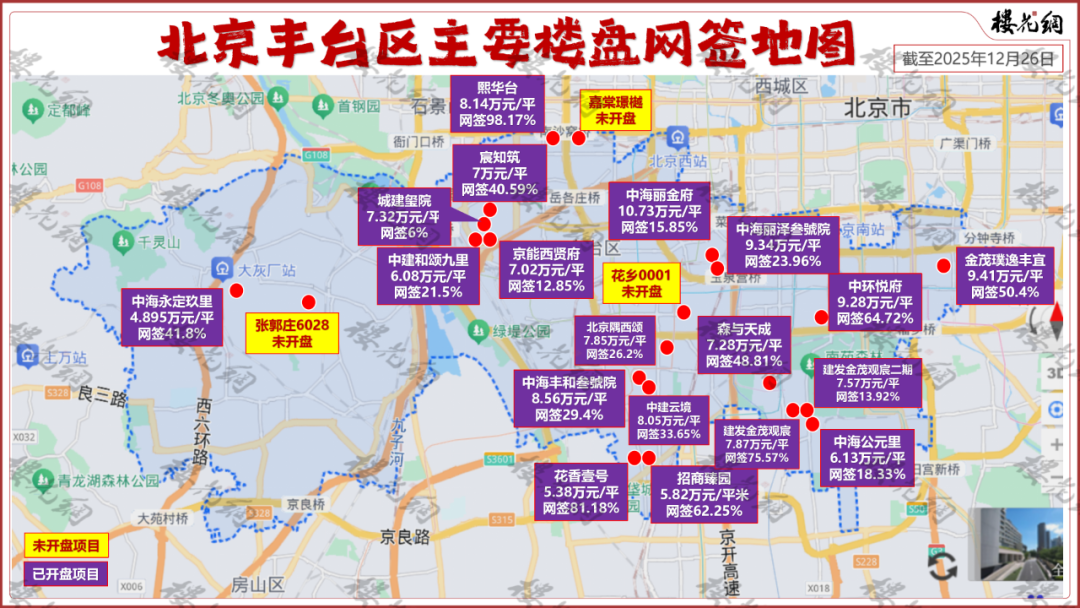 截至20205年12月28日,花姐统计了丰台主要在售19个楼盘和3块未开盘的地块,共计供应套数12729套,已网签4374套,待售套数8355套。