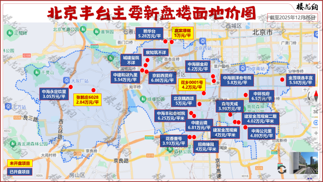 在2025年,丰台卖出5宗宅地:中海丽泽叁號院、建发金茂观宸二期,嘉棠璟樾、张郭庄6028地块、花乡0001地块。