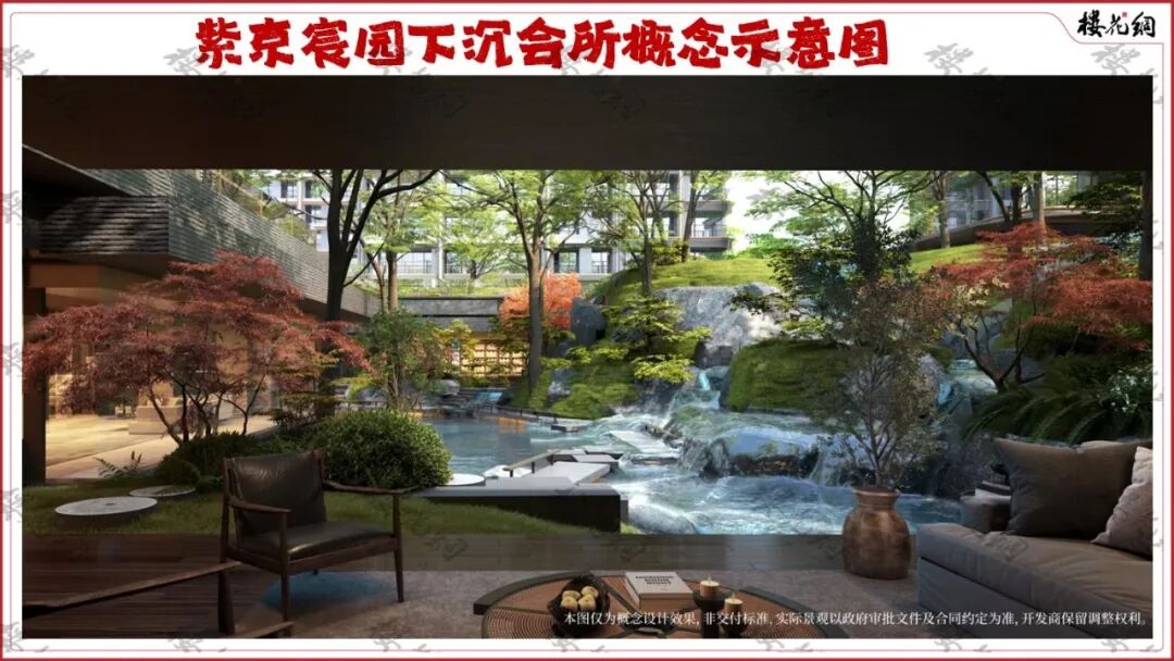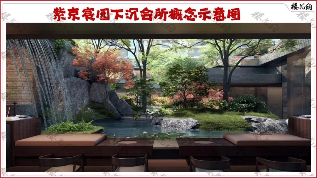 这里也是紫京宸园园林的精华所在。通过地上地下的物理落差,每一个会所功能区与园林之间,都装有大面积落地玻璃,形成“一窗一景”的格局。