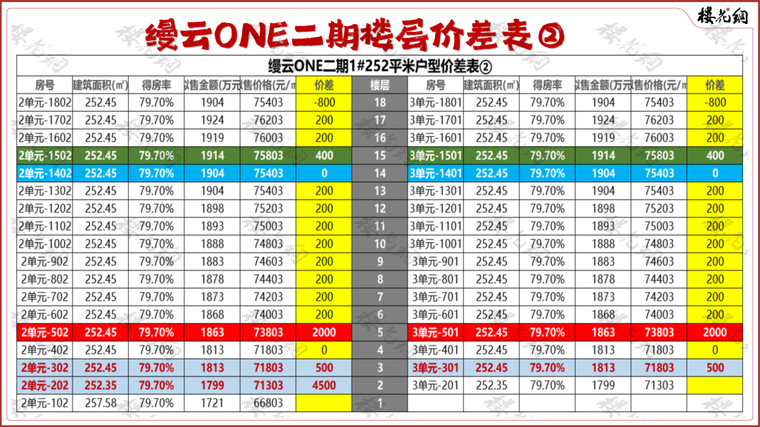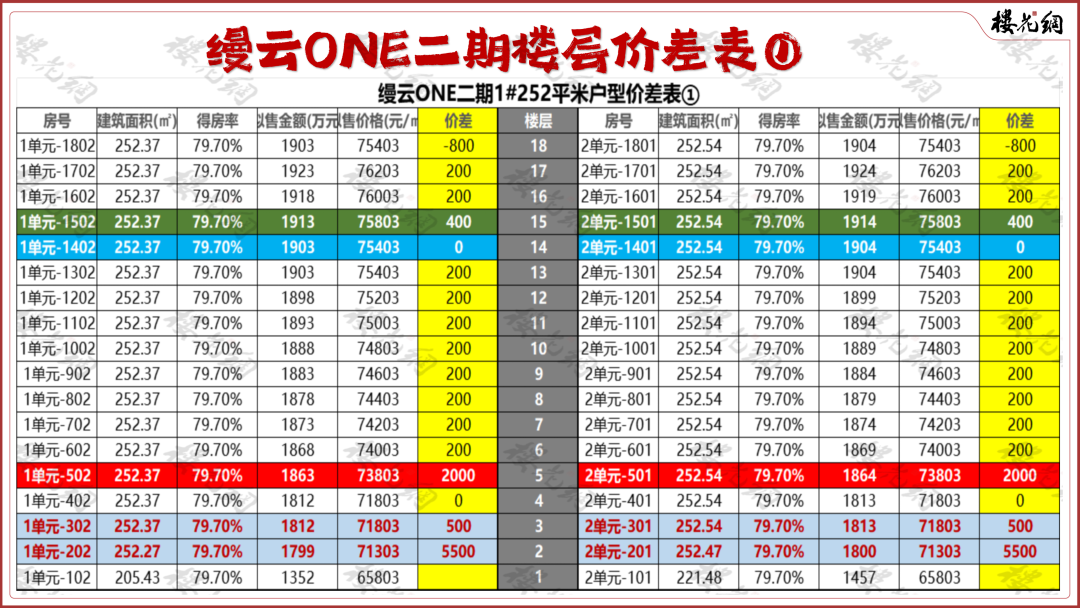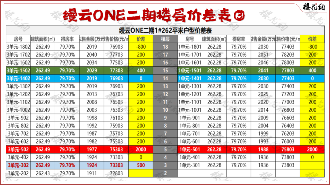 2绝大部分上下层差异不大,相差200元/平米;