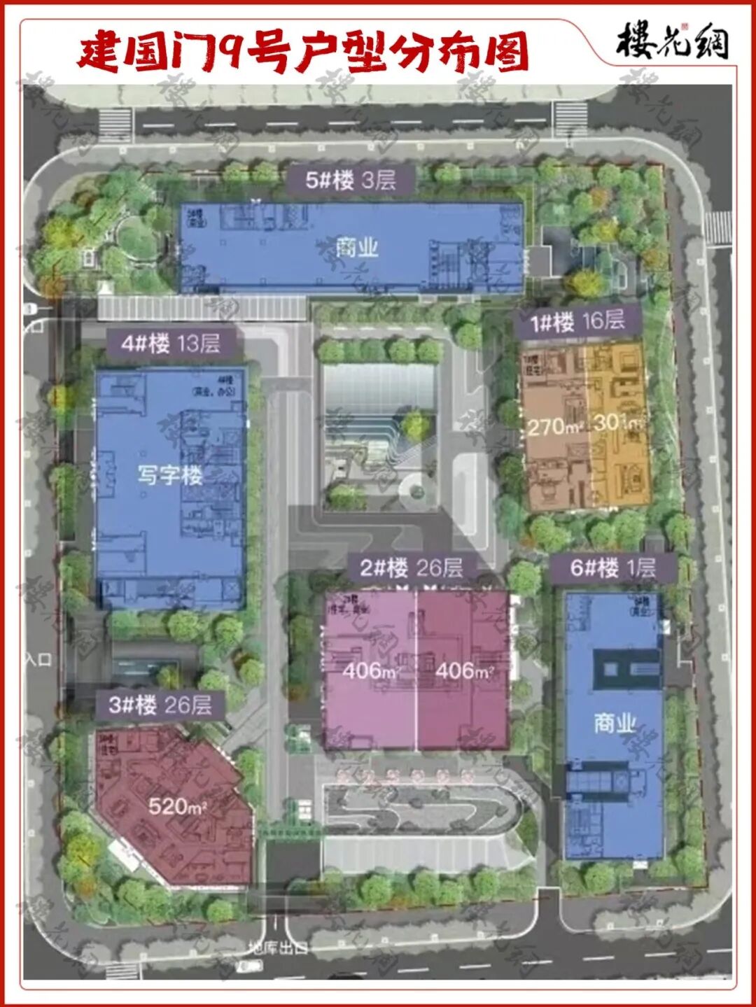 它共规划6栋楼,其中1-3号为住宅楼,共计97套,户型段位为270/301/406/510平,以及少量顶层复式414-900平。