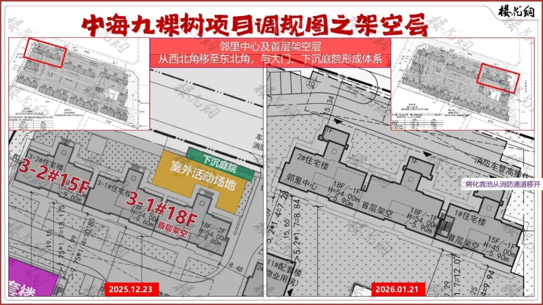1、减少架空层面积,把部分变成更实用的邻里中心。但,由于建筑总高度未变,15层45米、18层54米,花姐推测,它的架空层只有3米;