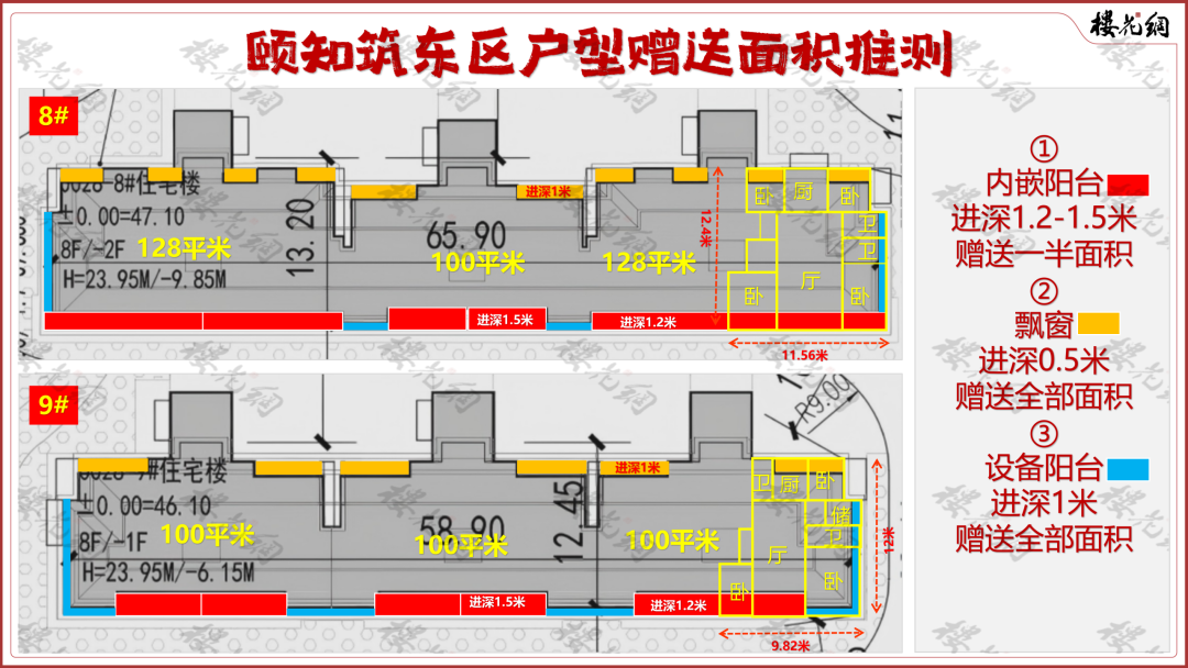 颐知筑东区的南向和侧面,只要没有阳台,那就设置了飘窗,全赠送。