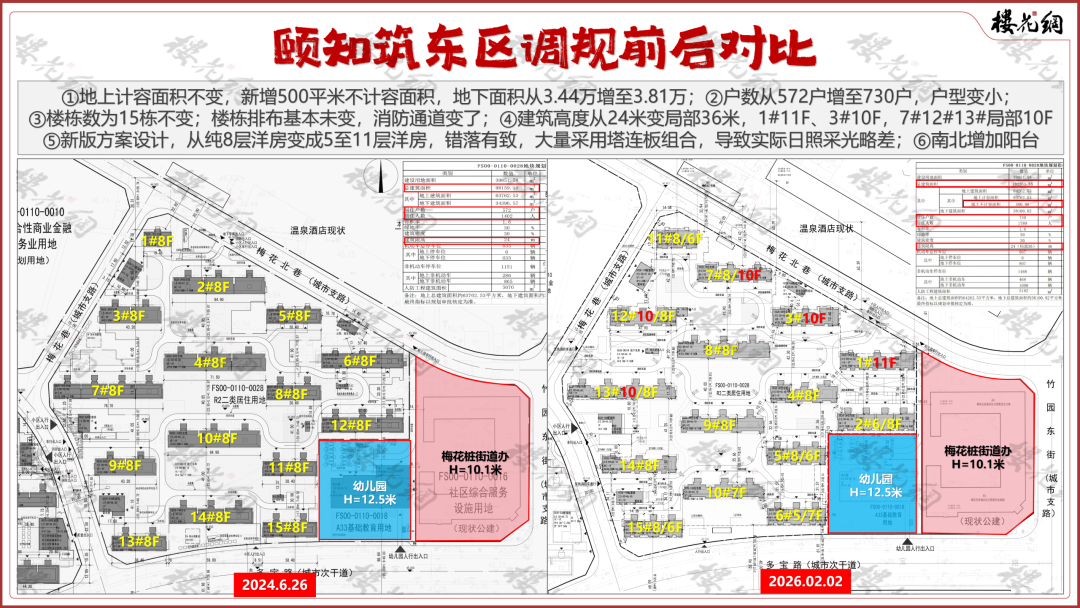 很明显,颐知筑东区的户型,从无阳台变成开敞阳台,建筑高度从24米变成局部36米。