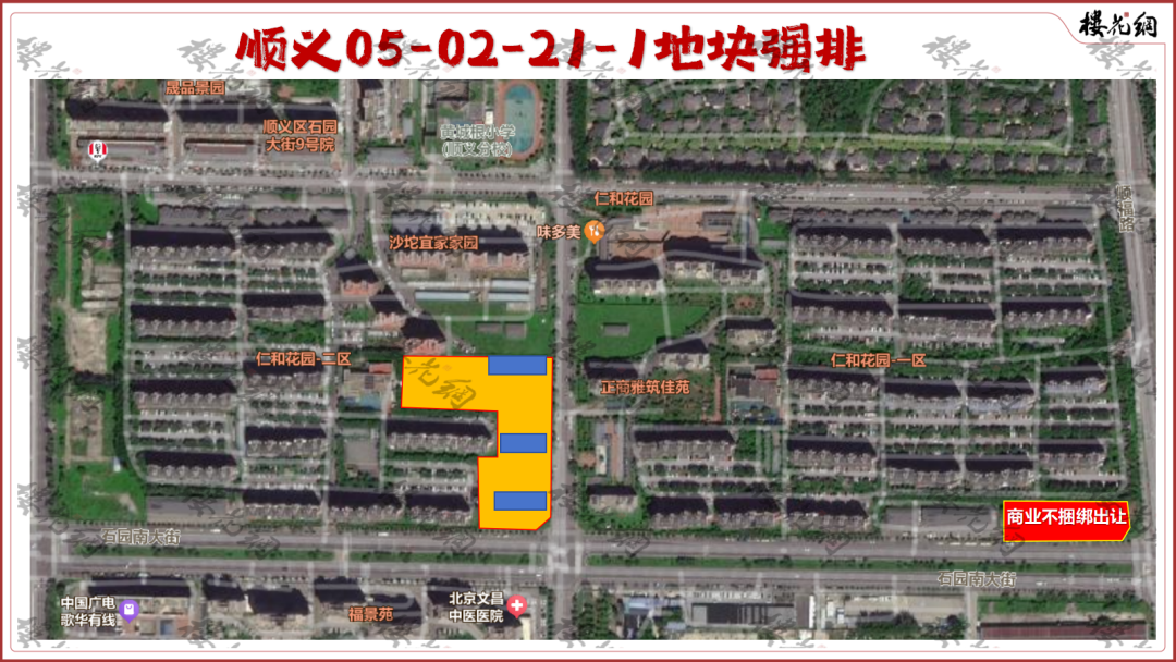 这栋楼会对21-1地块形成遮挡,导致长约98米、宽58米的土地,无法排列住宅楼。