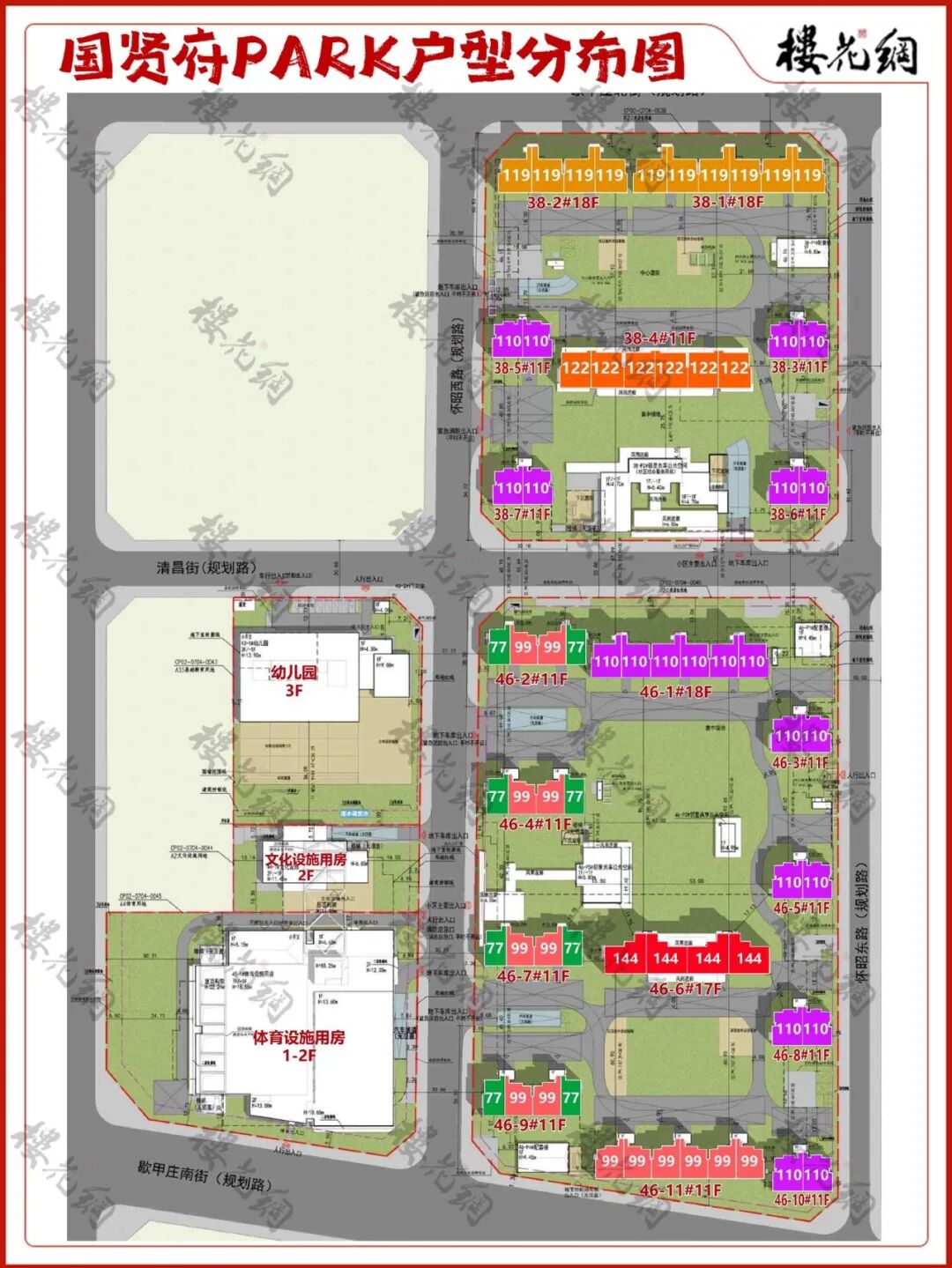 恰好,国贤府PARK有六块地——0038、0046两个纯居住地块,和拿地前新增的0035、0043、0044、0045等,四个文教体育及综合服务地块。