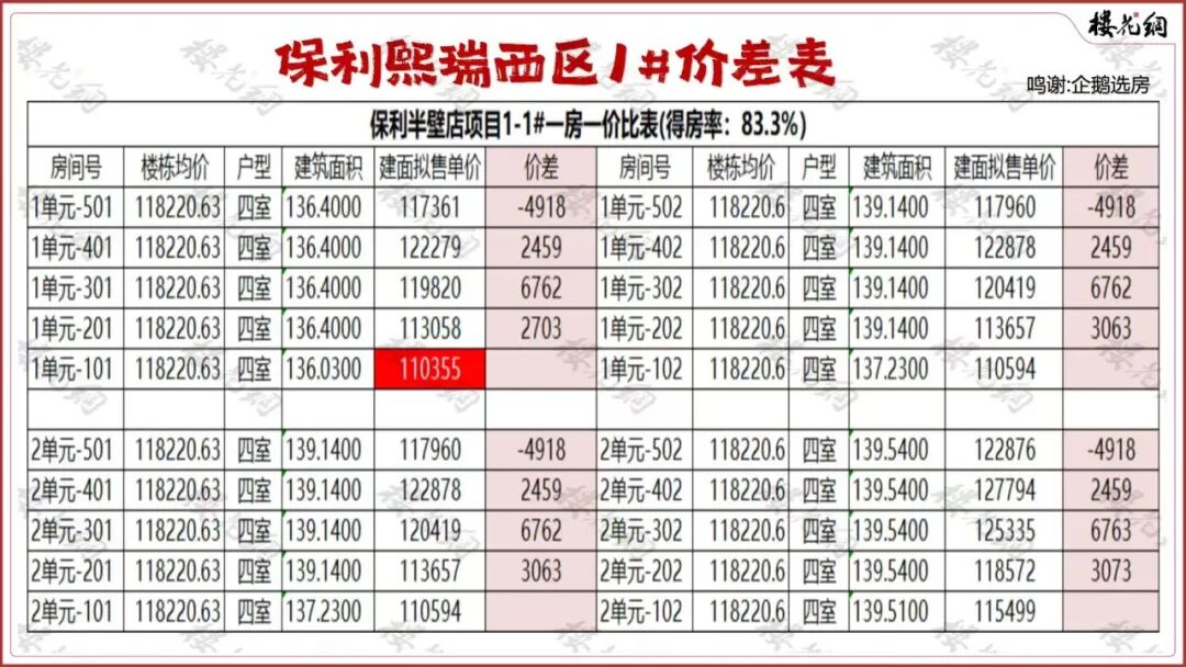 保利熙瑞的预售均价为12.46万元/平米,如果按九折算,网签价在11.2万元/平米左右。