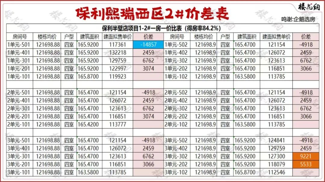 5#的二楼不错,预售价竟然比一层还低;4#302的价格有点异常,竟然比202高出11445元/平米。