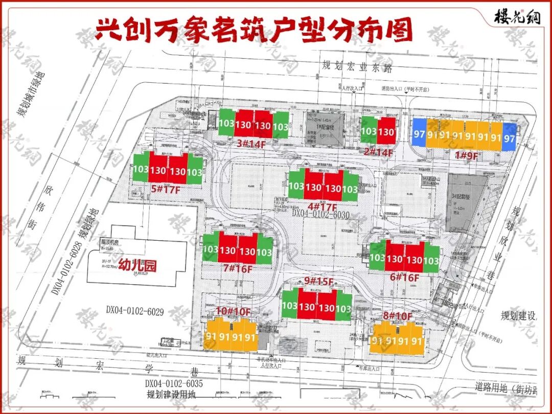 103平和130平,集中在剩余7栋14-17层不等的小高层中。103平为边户,130平中间户。
