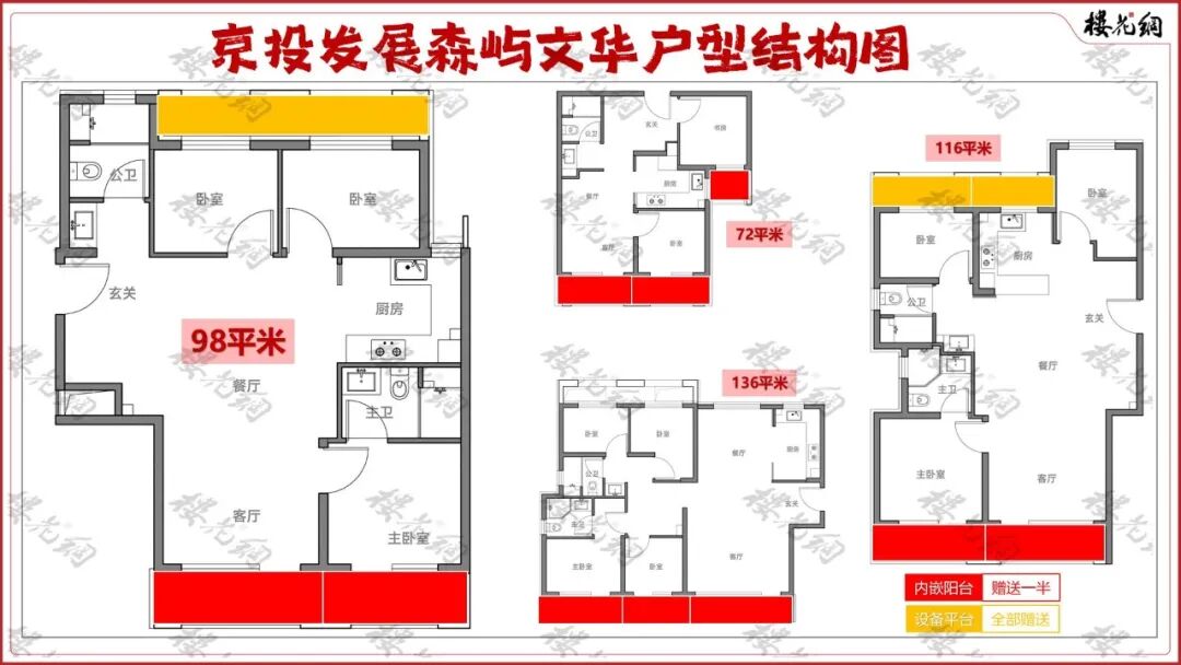 其中72㎡两居、98-99㎡三居为主力户型,占比超过60%。