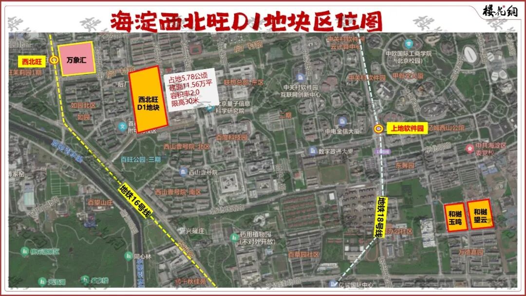 西北旺D1地块占地5.78公顷,规划建面11.56万平米,容积率2.0、限高30米。